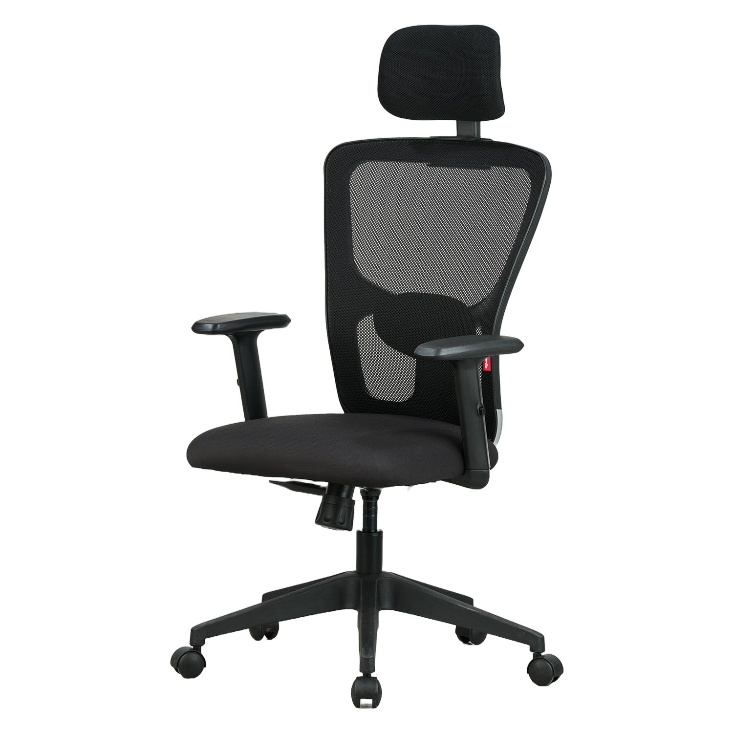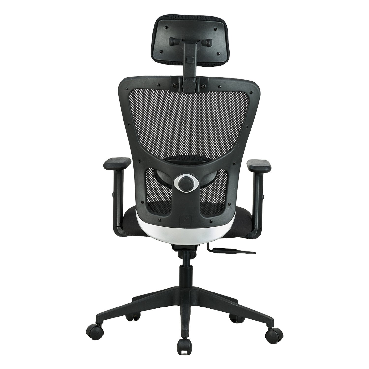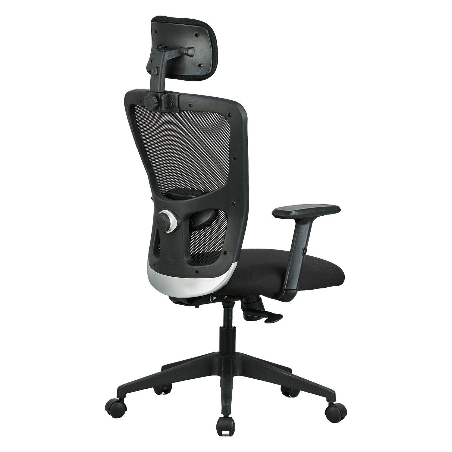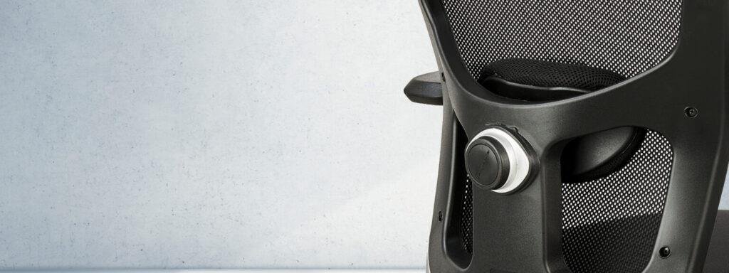 The adjustable lumbar support attached to the chair regulates the height of the lumbar support independent of the seat back. It is easily adjustable to enhance comfort.