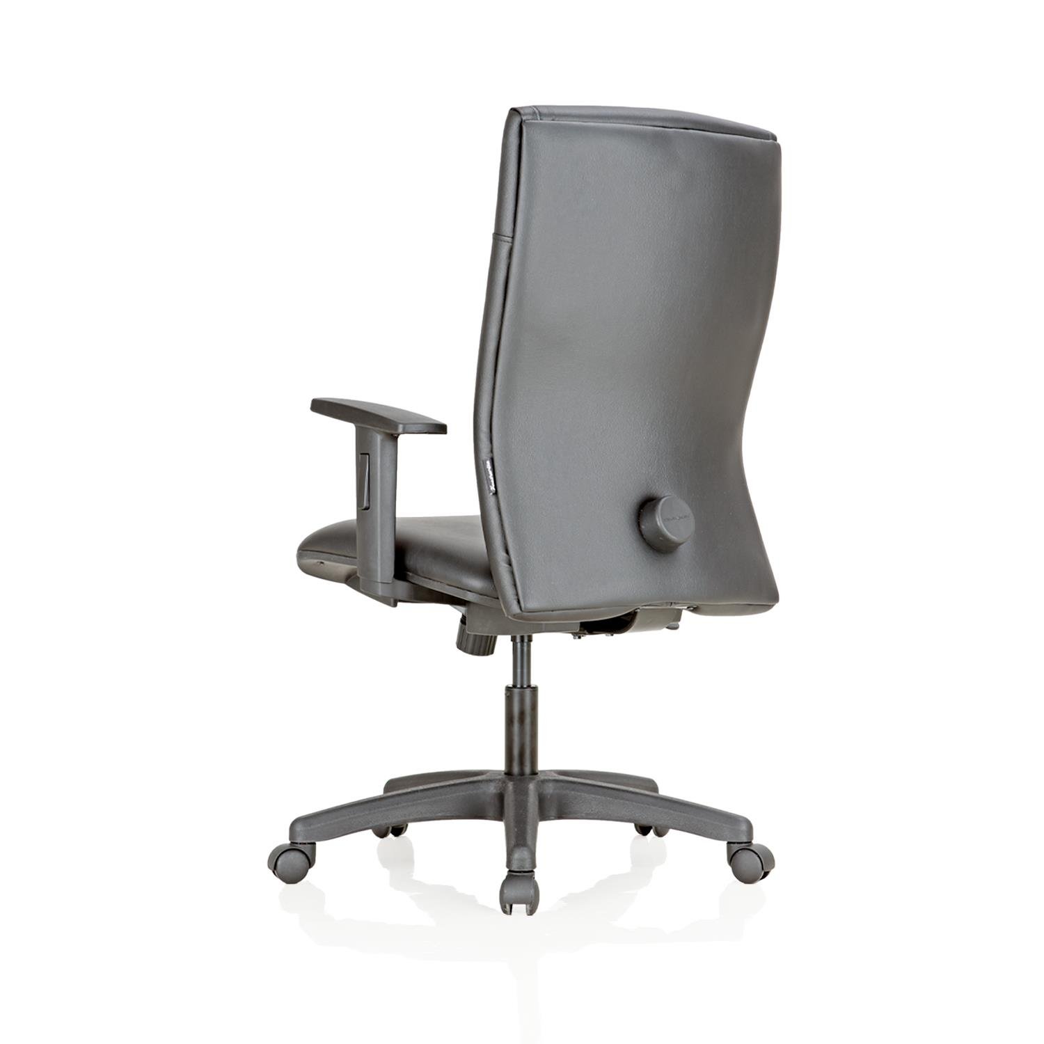The adjustable lumbar support attached to the chair regulates the height of the lumbar support independent of the seat back. It is easily adjustable to enhance comfort.