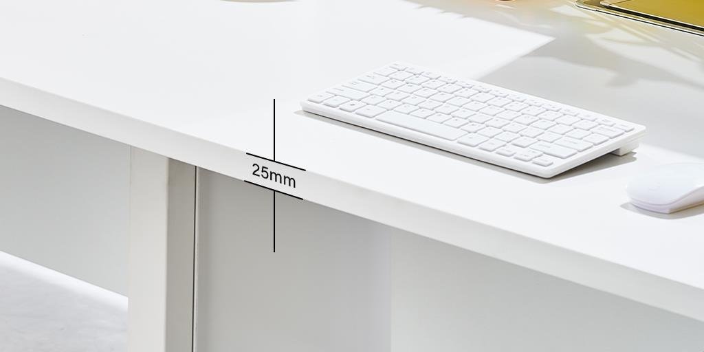 Our E1 grade pre-laminated surface is the ideal workspace. The 25 mm thick particle board ensures stability and longevity.