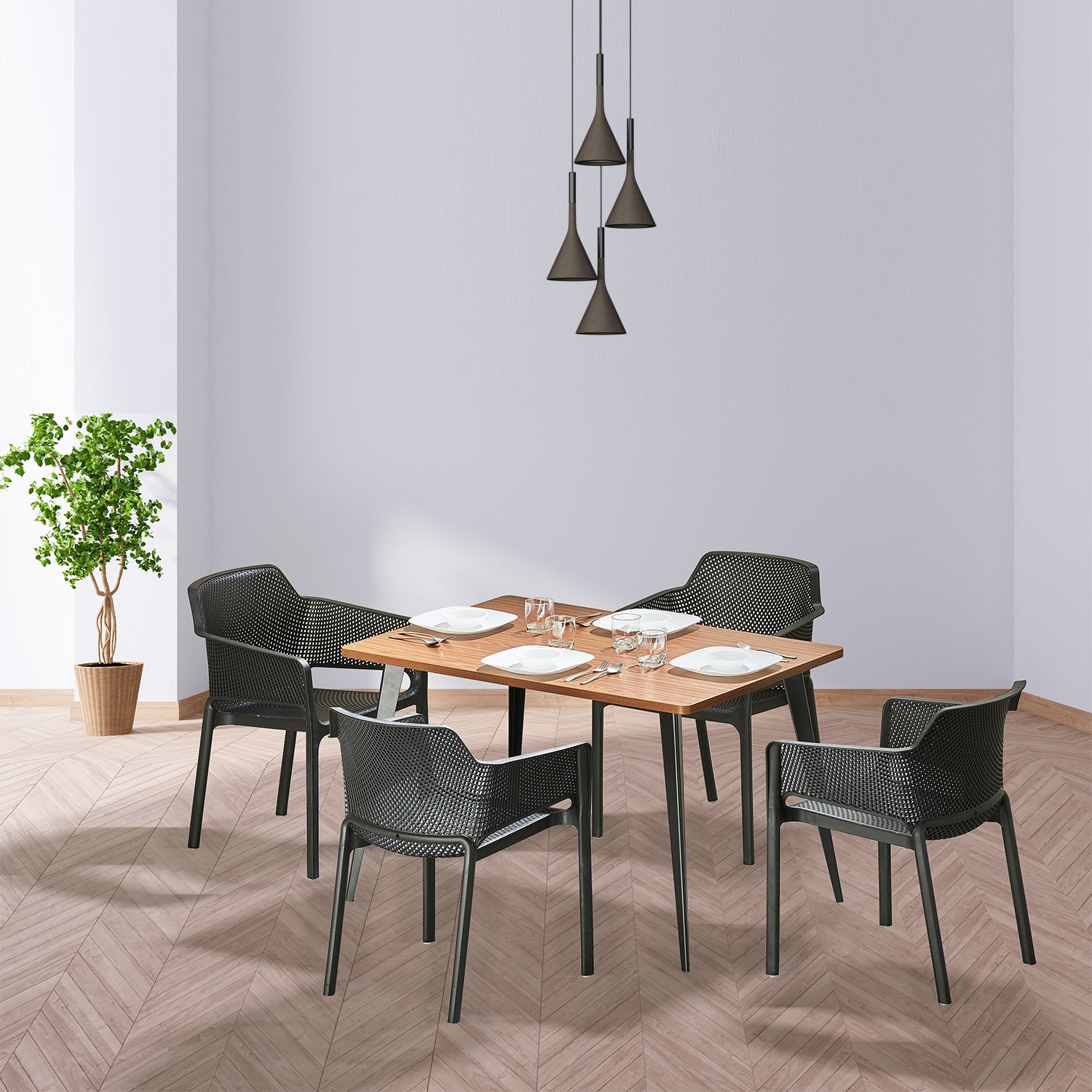 Living Air Engineered Wood 4 Seater Dining Set
