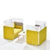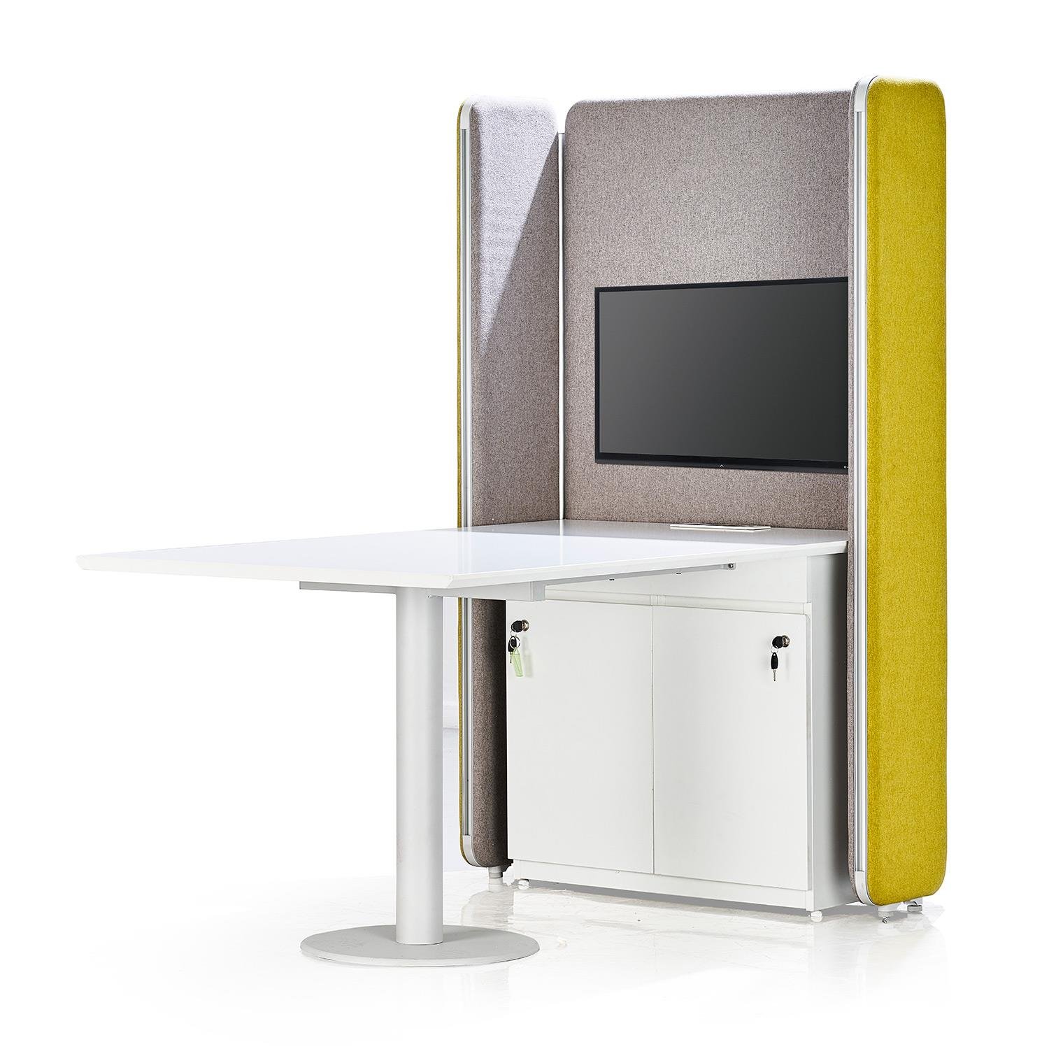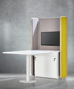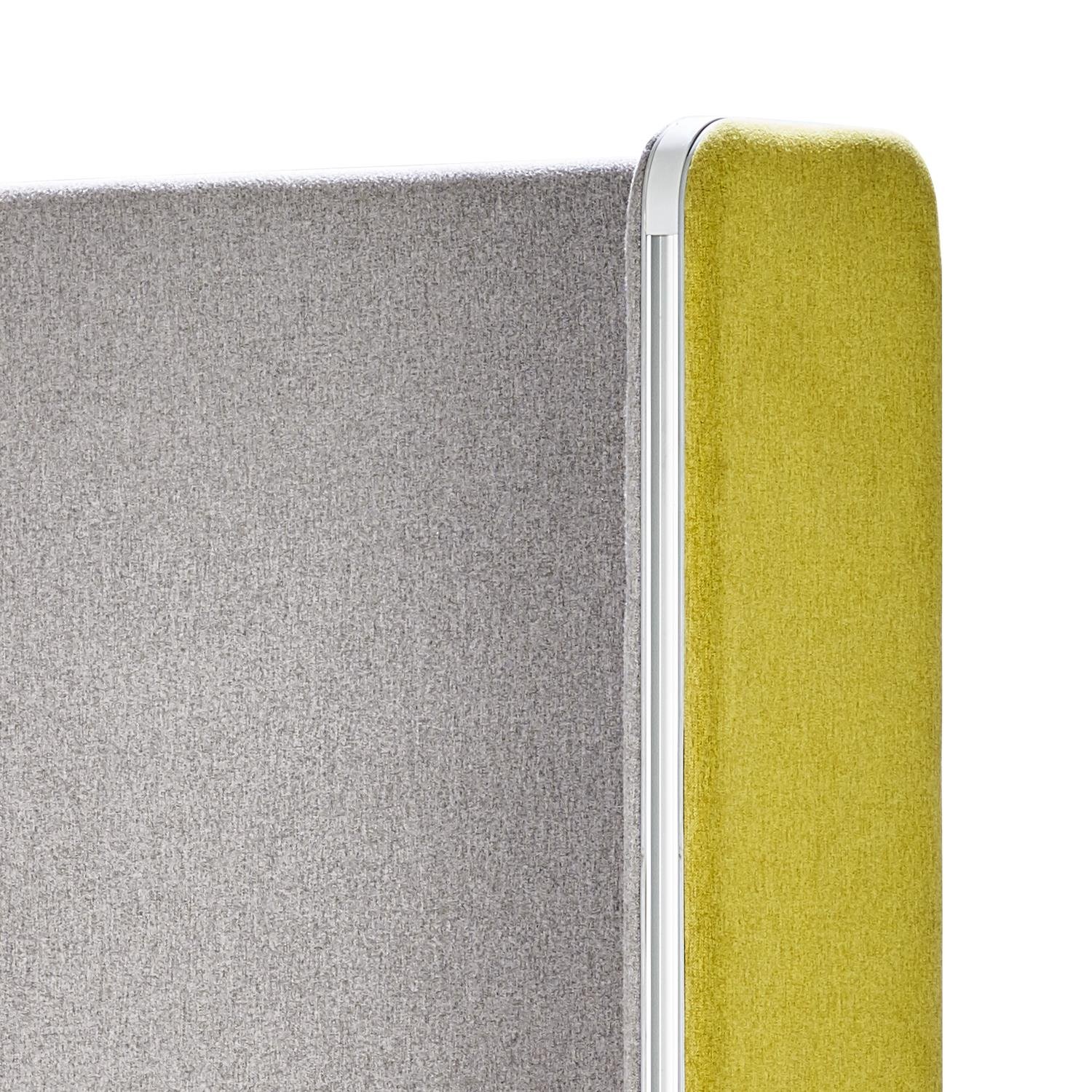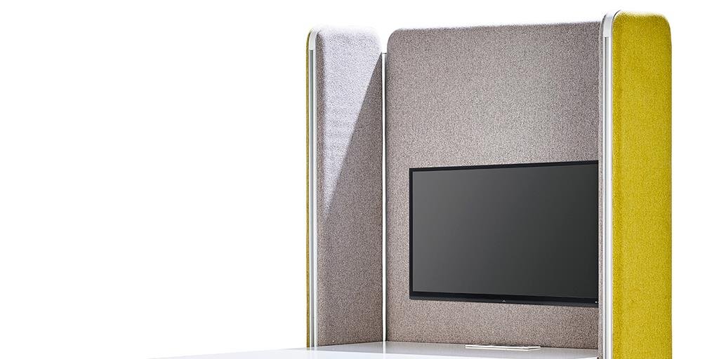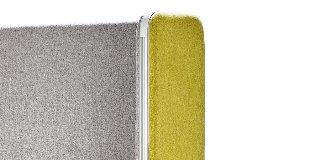 Our Aluminum based panels are 55-60 MM thick and upholstered with an acoustic fleece, which is ideal for absorbing sound. Our panel edges are powder coated with 60 microns of thickness to ensure scratch resistance.