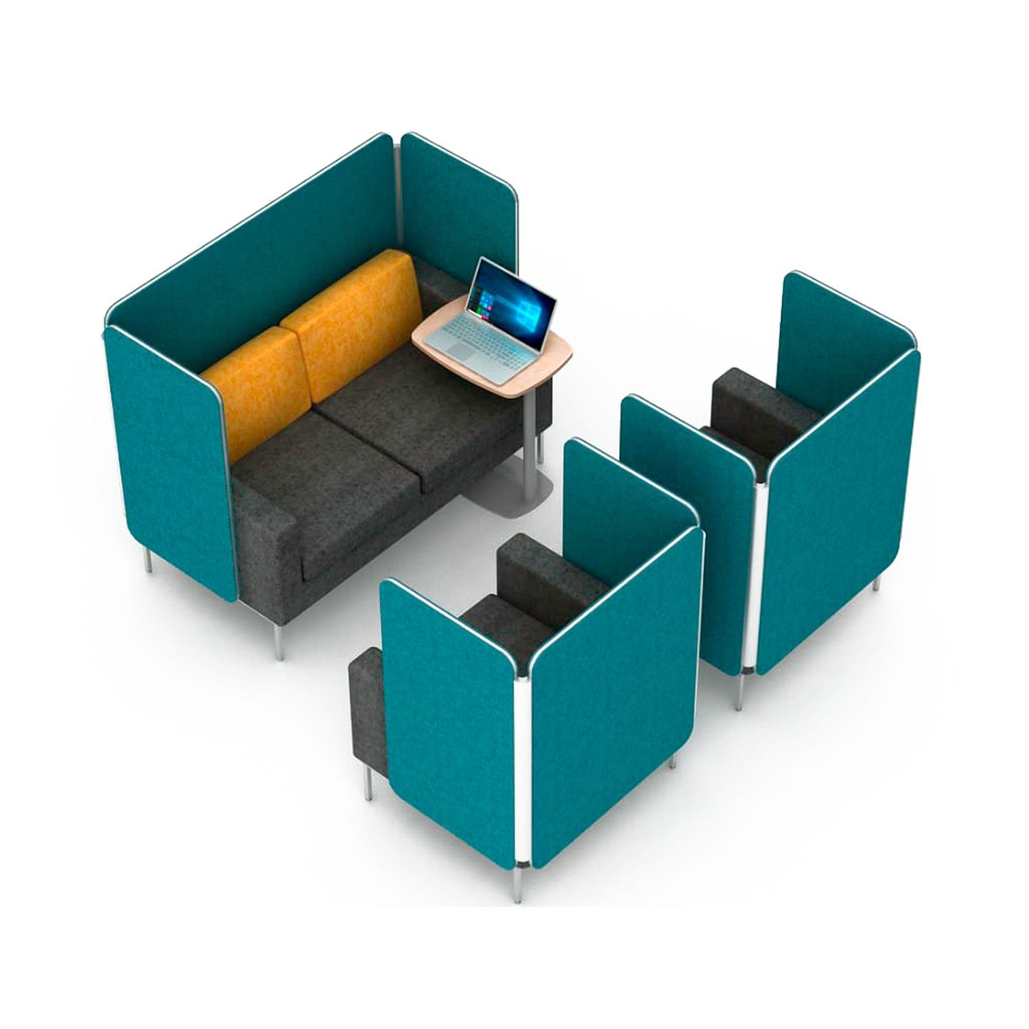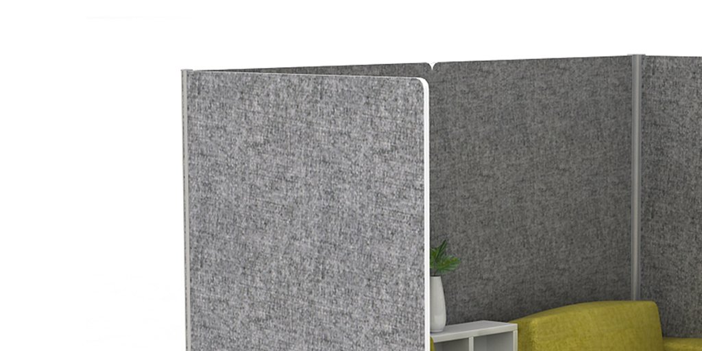 Our Aluminum based panels are 55-60 MM thick and upholstered with an acoustic fleece, which is ideal for absorbing sound. Our panel edges are powder coated with 60 microns of thickness to ensure scratch resistance.