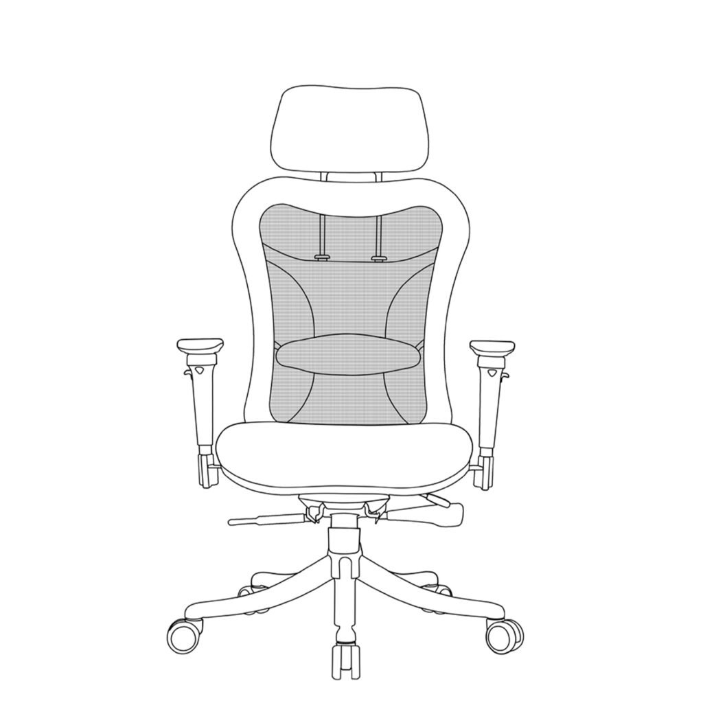 The adjustable lumbar support attached to the chair regulates the height of the lumbar support independent of the seat back. It is easily adjustable to enhance comfort.