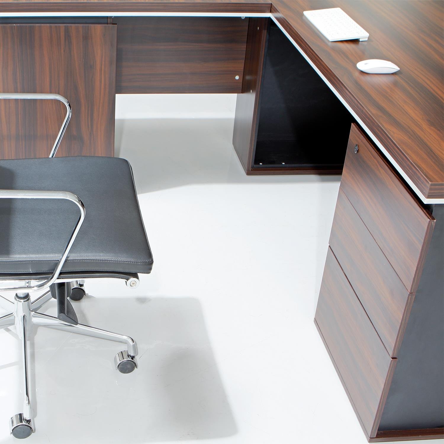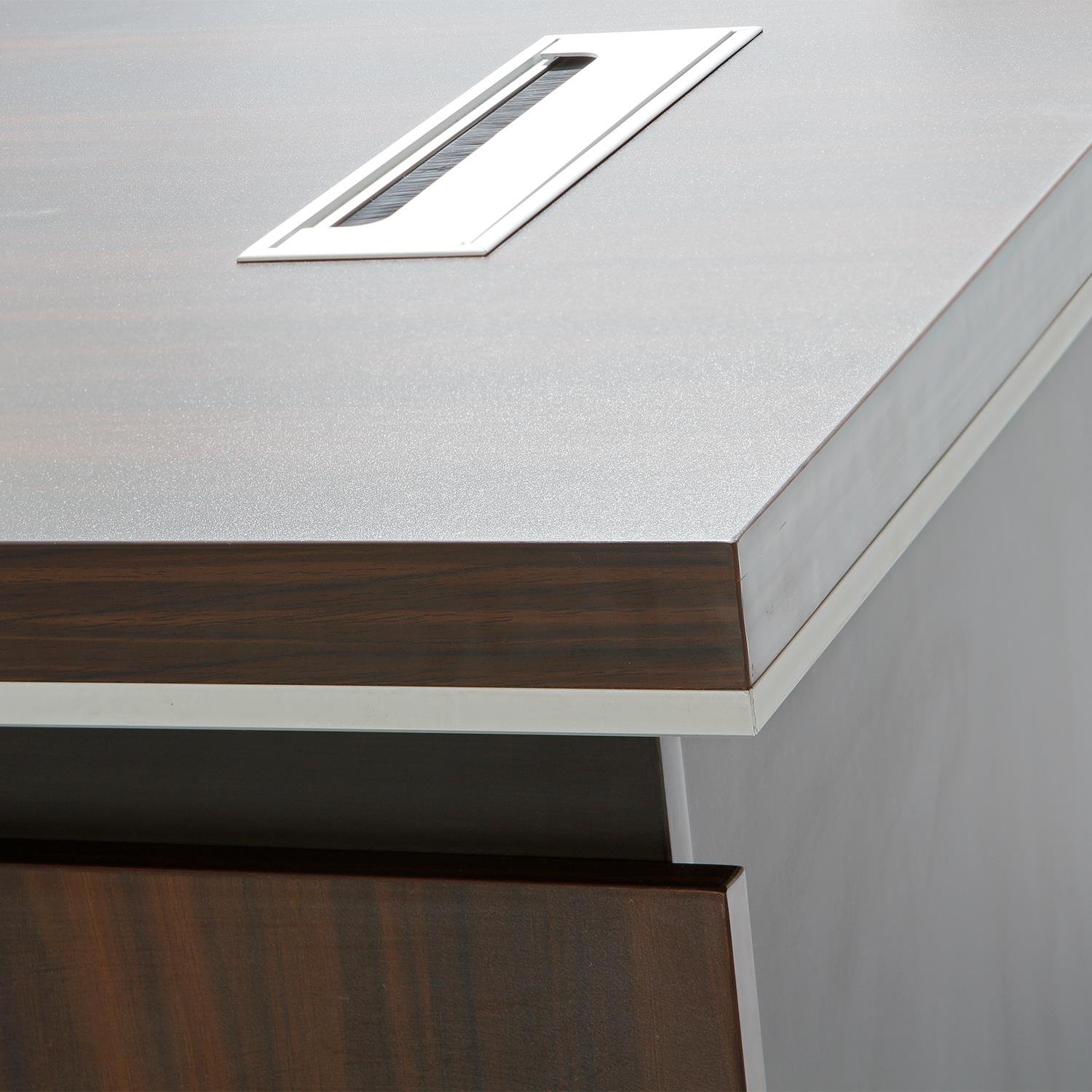 Senate is a desk inspired by the philosophies of minimalism and usability. Optimised to fit into and subtly enhance its environment, Senate is a desk for the design focused consumer. It has elegant & beautiful dark wood cabinets. This desk emerges as an object of sleek, uninterrupted lines that speaks of power in the workplace.