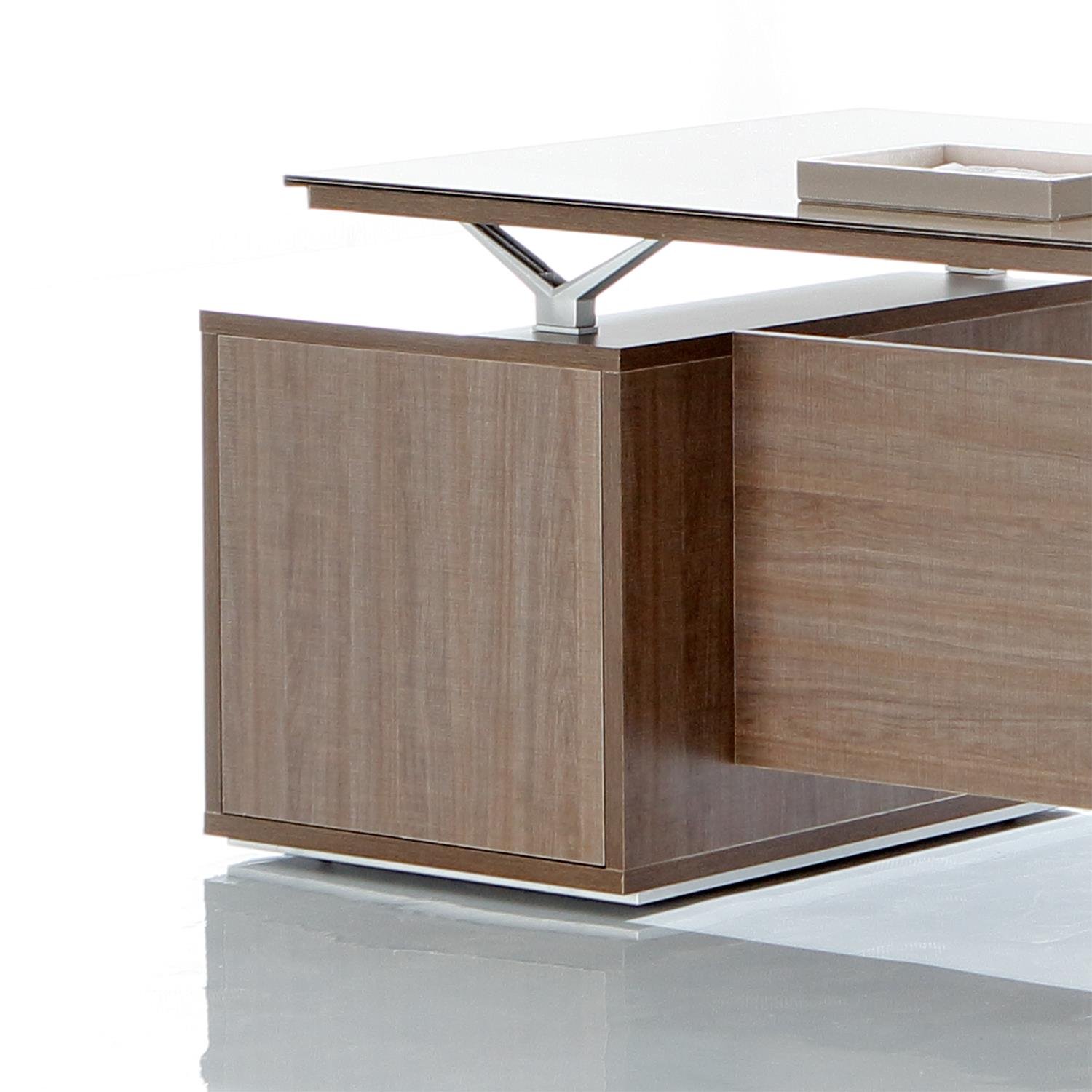 It has a floating look & gives a streamlined user experience that focuses on practicality and space. A desk to make an impression and make life easy.