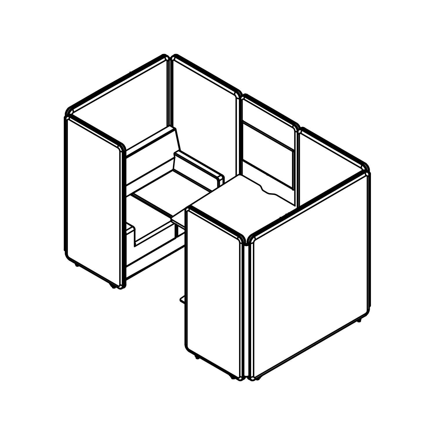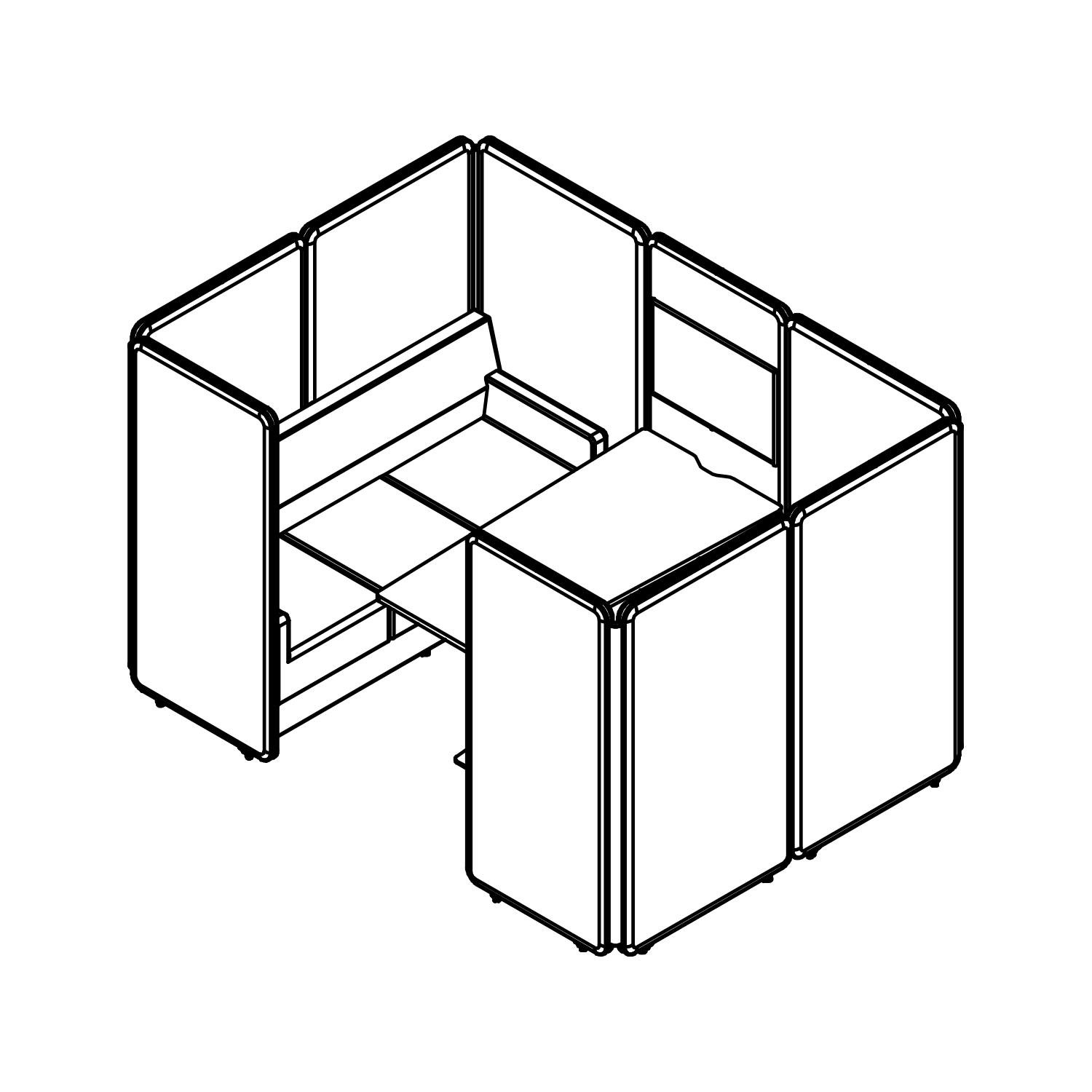 The ergonomic design ensures that the entire set-up is equipped with universal electrical outlets and USB ports for charging devices and LAN ports for connectivity.