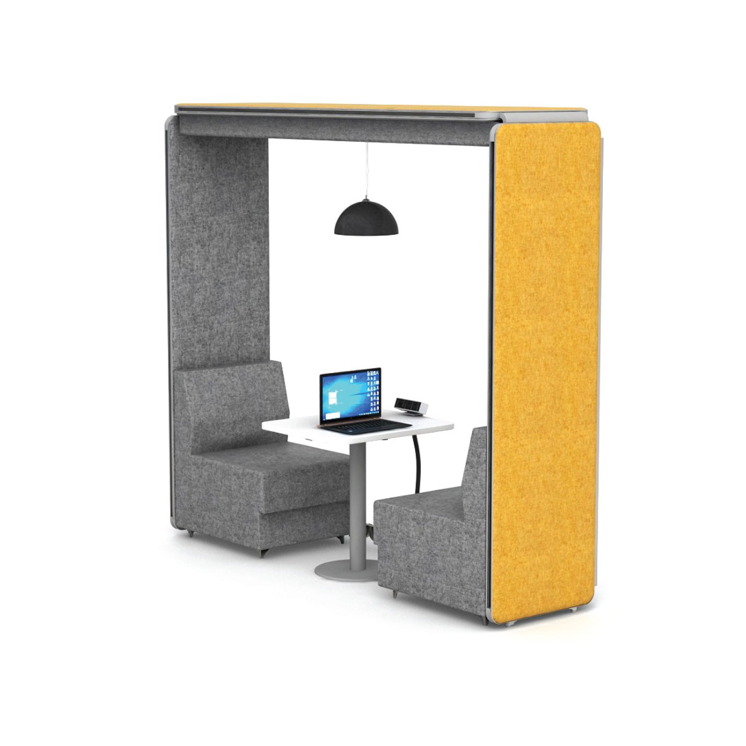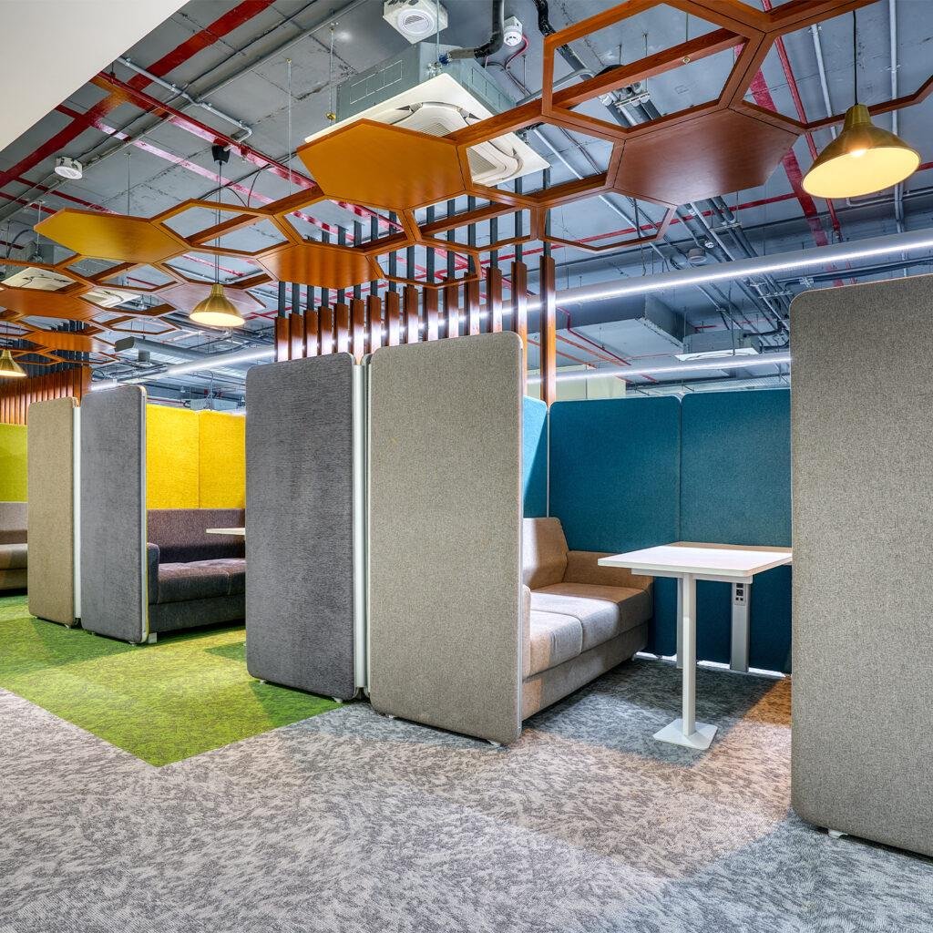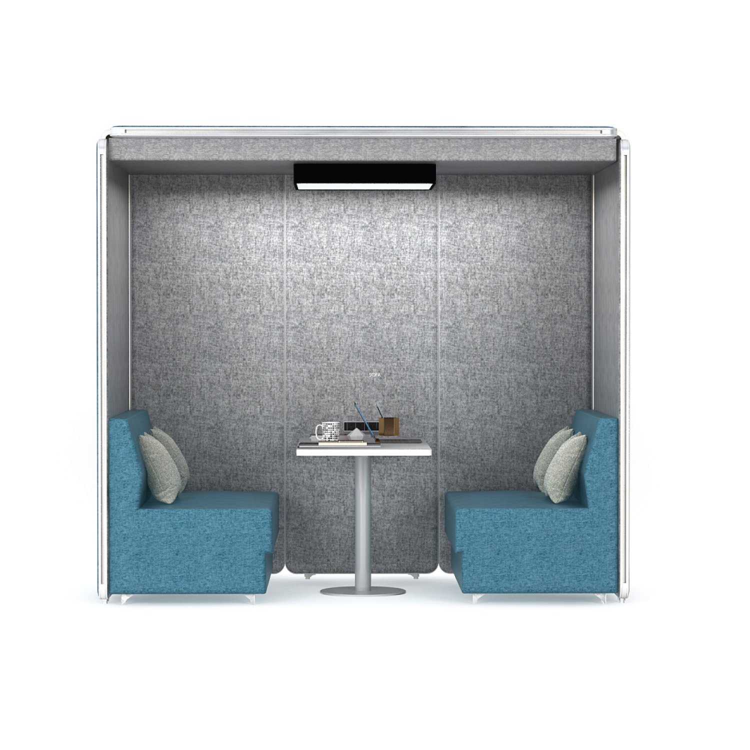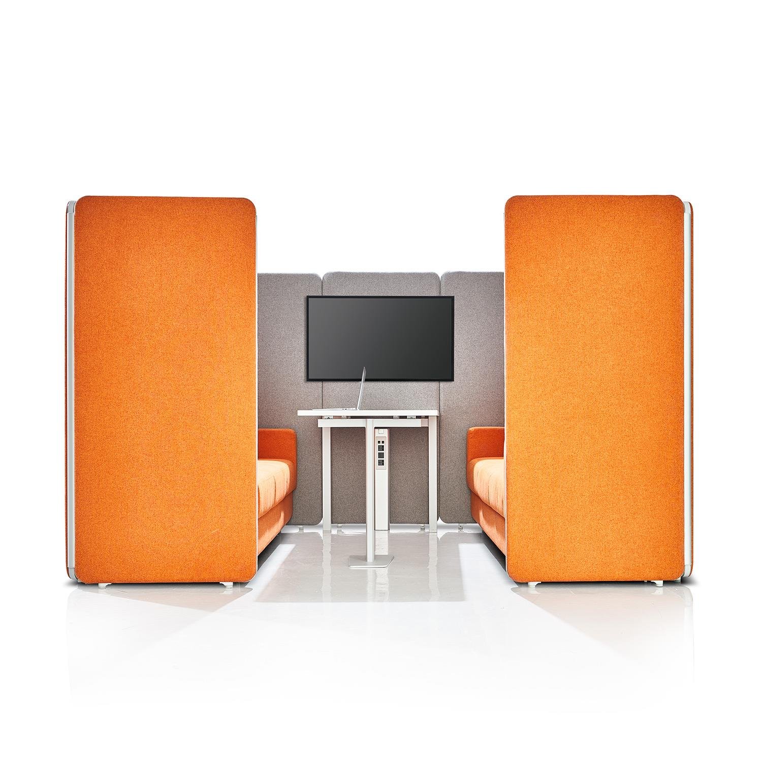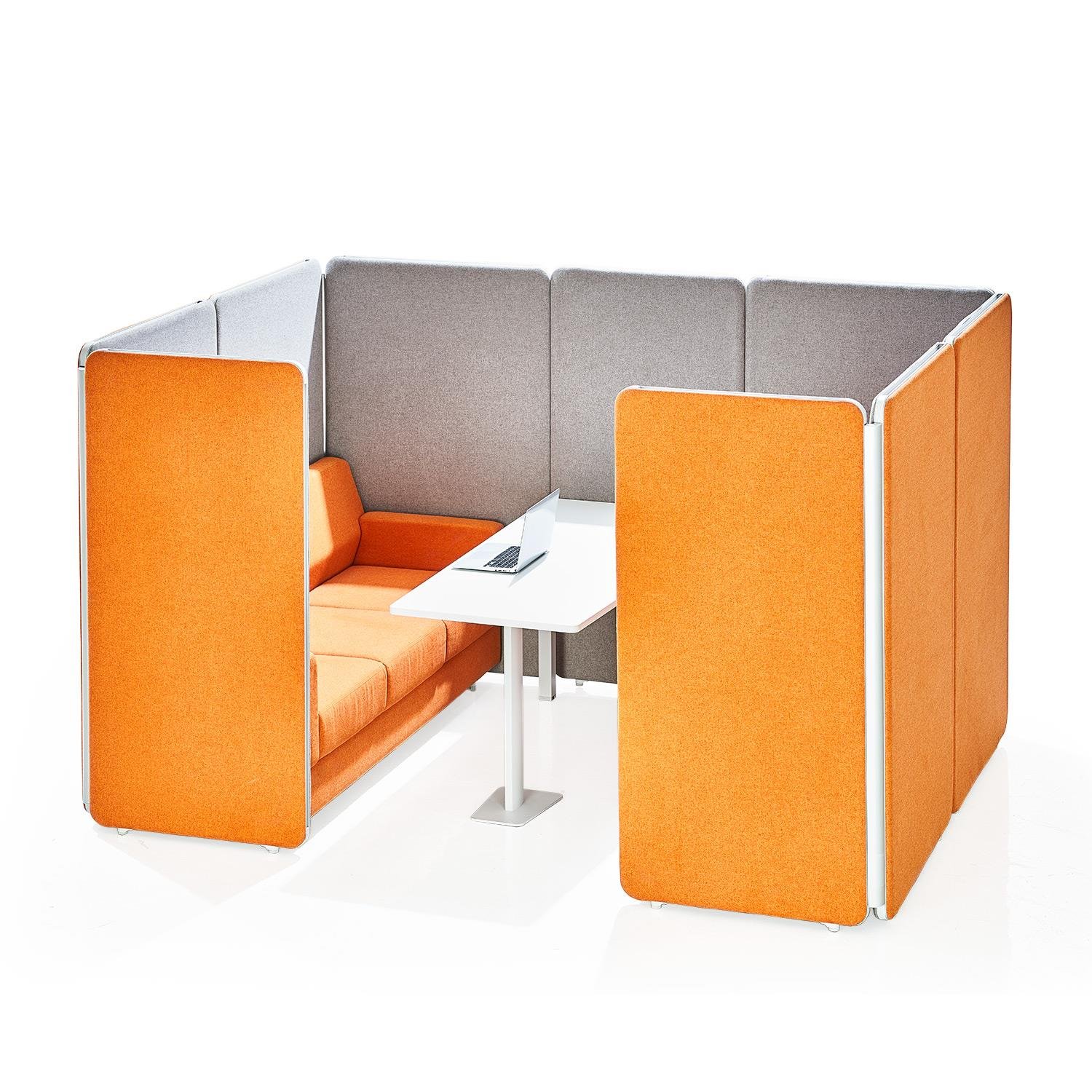 Our Aluminum based panels are 55-60 MM thick and upholstered with an acoustic fleece, which is ideal for absorbing sound. Our panel edges are powder coated with 60 microns of thickness to ensure scratch resistance.