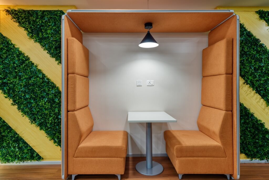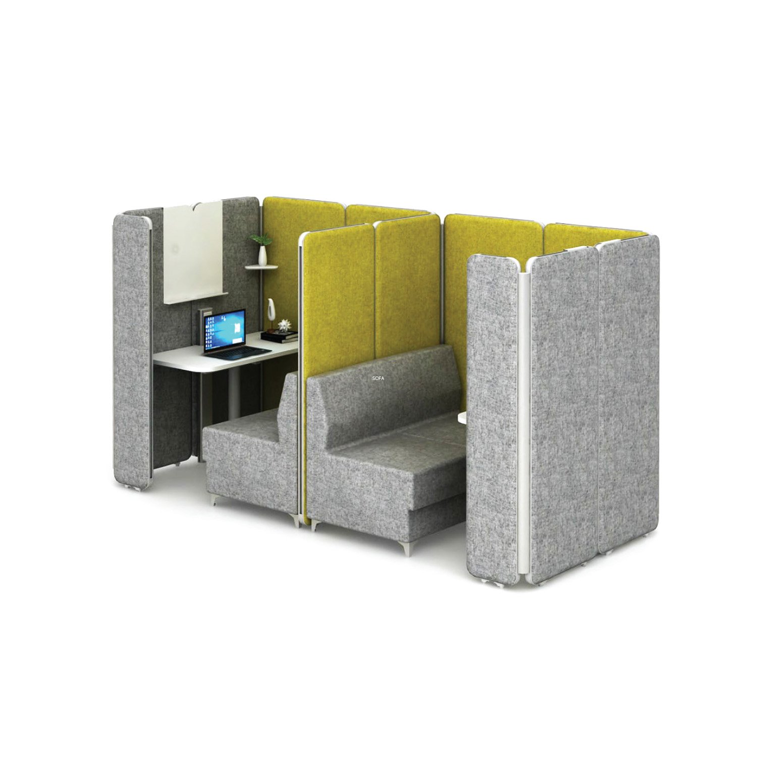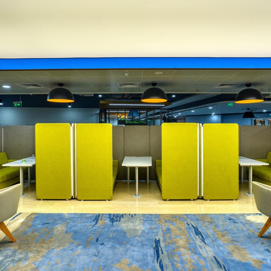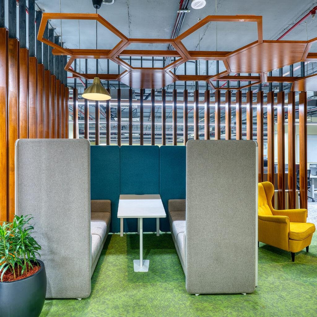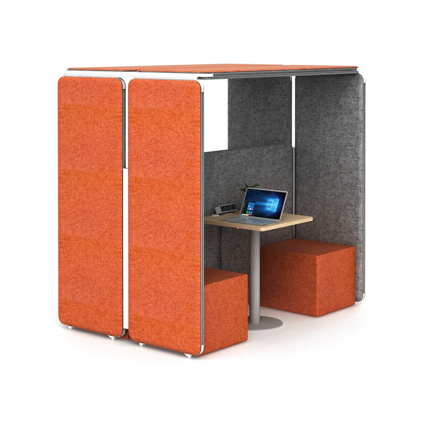 Our Aluminum based panels are 55-60 MM thick and upholstered with an acoustic fleece, which is ideal for absorbing sound. Our panel edges are powder coated with 60 microns of thickness to ensure scratch resistance.