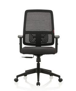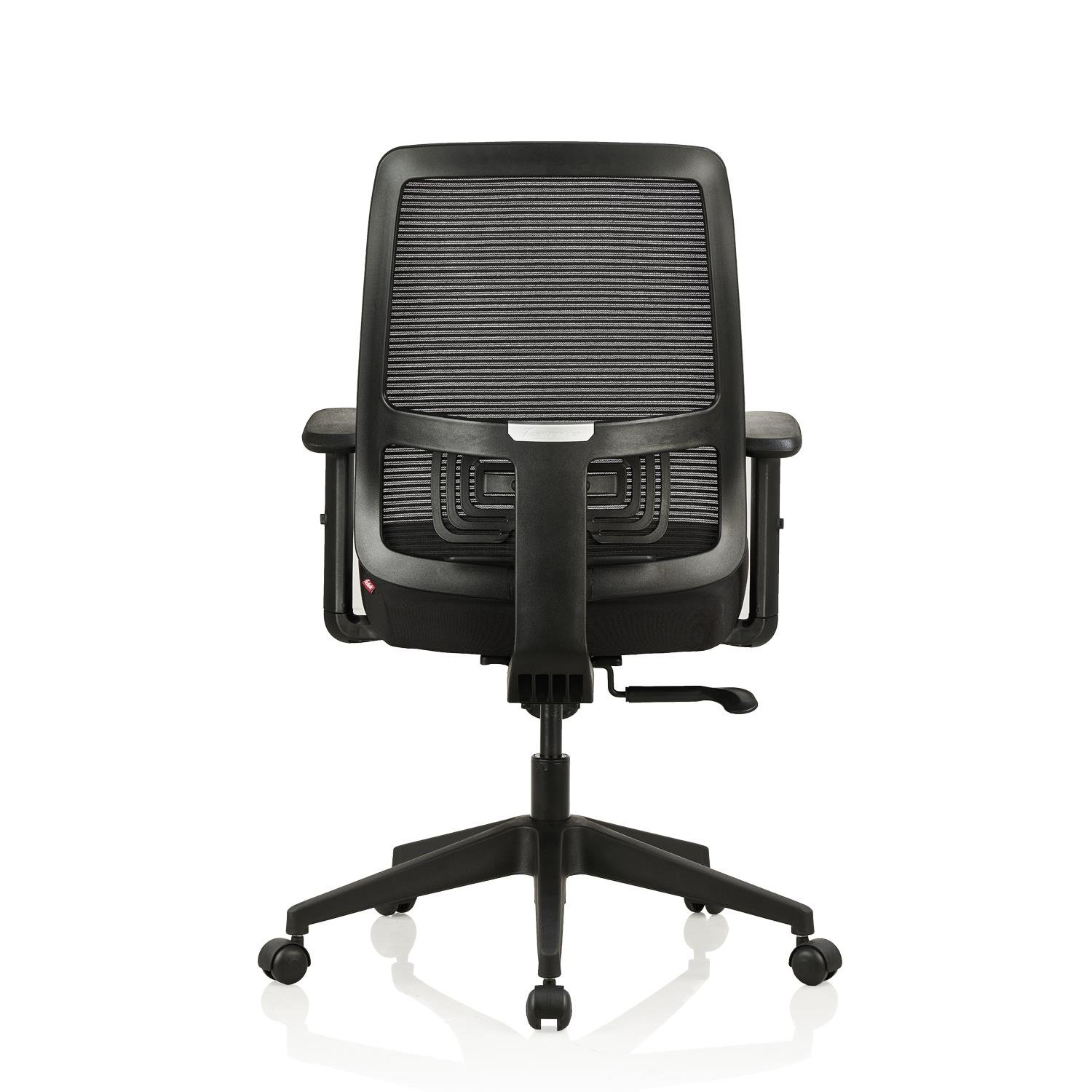 The adjustable lumbar support attached to the chair regulates the height of the lumbar support independent of the seat back. It is easily adjustable to enhance comfort.
