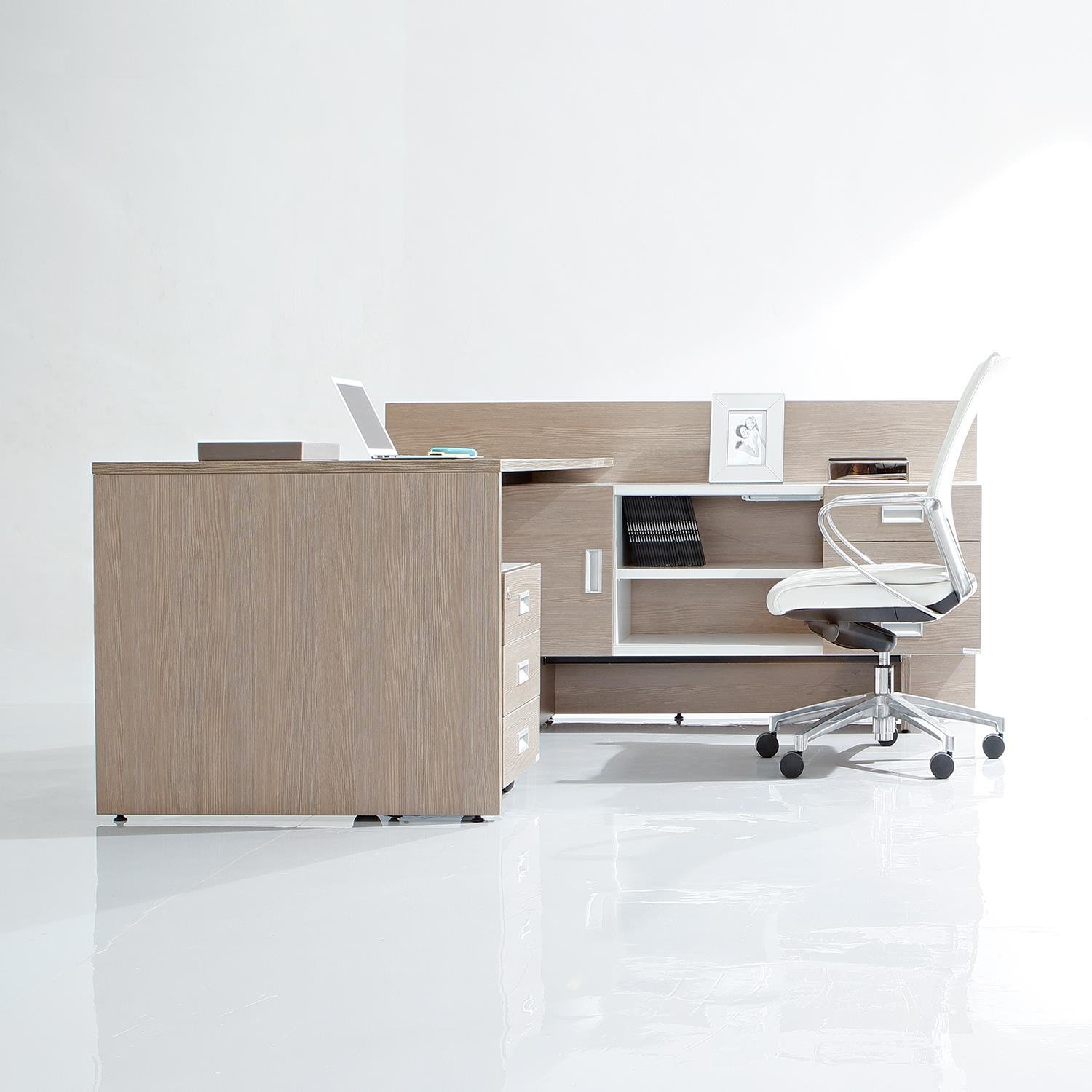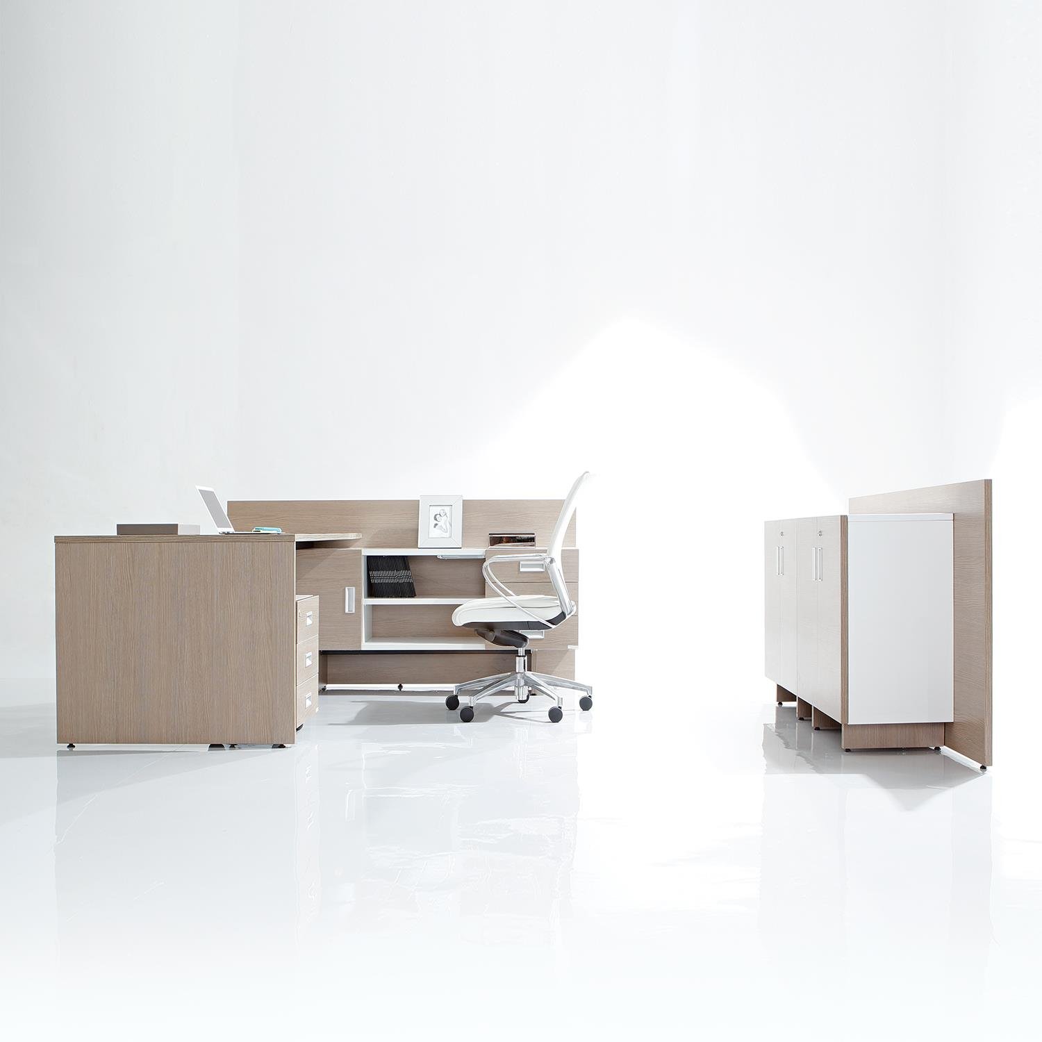 Introducing Zen, the new executive designs that harmonise space, form and function. Thoughtful, compact, yet sophisticated designs which offer an organised workspace. The relaxed colours combined with natural wood patterns deliver a pleasing experience at work